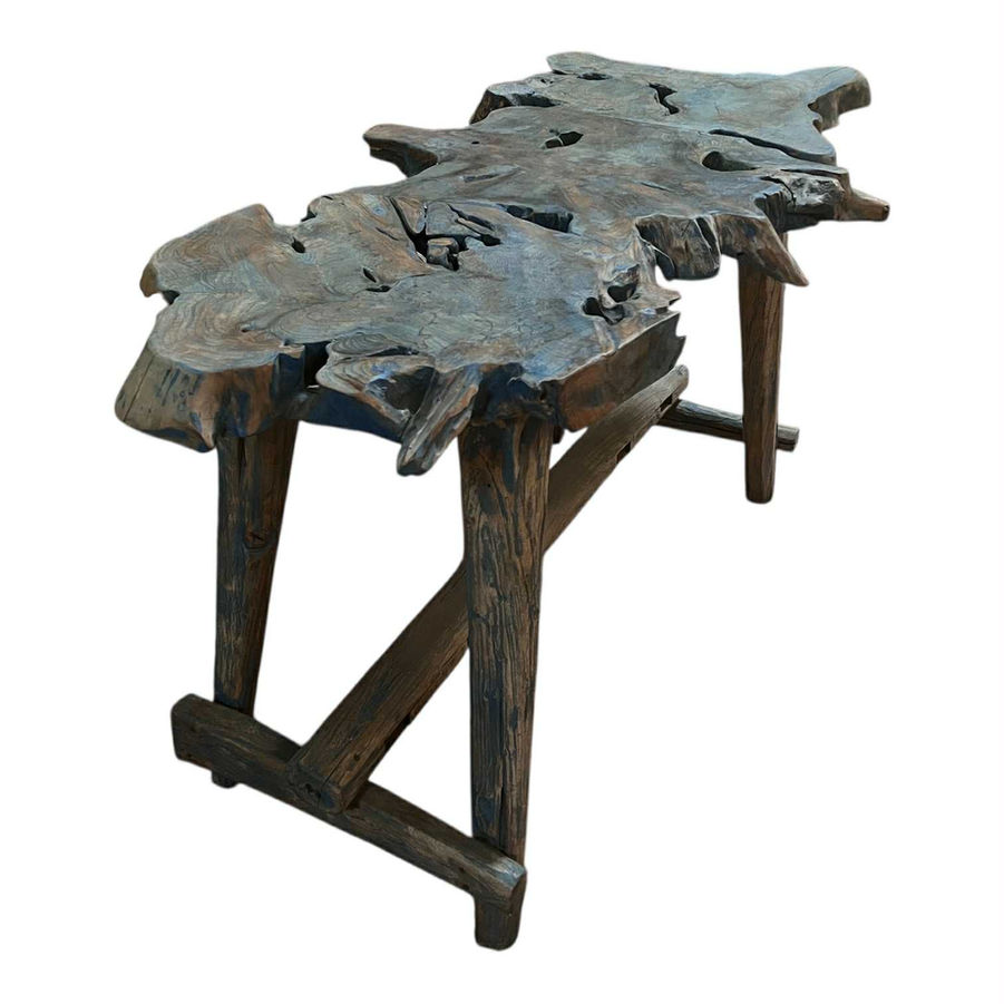 Cette Console en racine de Teck de style bord de mer est une pièce unique.