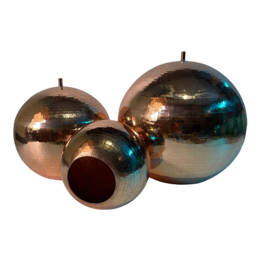 La Suspension en cuivre Bowl avec une finition polie est une pièce magnifique et artisanale. Chaque suspension est fabriquée à la main et façonnée en forme de boule avant d'être méticuleusement martelée et polie pour lui redonner tout son éclat. Ces suspensions en cuivre apporteront une touche de sophistication et de chaleur à tout intérieur, qu'il soit de style campagne avec poutres apparentes ou très moderne. Le cuivre poli ajoute une touche de luxe et de caractère à n'importe quelle pièce, en apportant une lumière douce et chaleureuse. Offrez-vous cette superbe suspension en cuivre pour ajouter une touche d'élégance à votre intérieur.